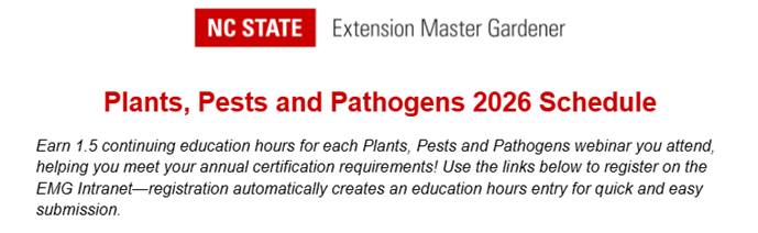Any horticulture related seminars/webinar/class/workshop hosted by NC State, County Extension Centers, or MG programs