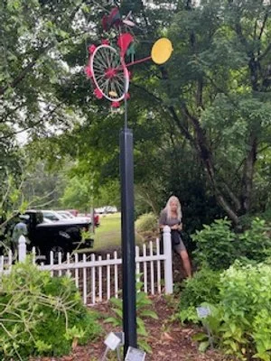 Kudos to Gayle Pfeiffer for organizing yet another stellar Field Trip Friday—this time to the Wilson Cooperative Extension Demonstration Garden, Wilson Rose Garden, and the Vollis Simpson Whirligig Park. Many thanks to Wanda Maggart for arranging a special appearance by Sam Price, whirligig conservationist and creator, who shared his expertise with our group. The whimsical park proved to be a true wonder, sparking ideas for our own Botanical Garden.